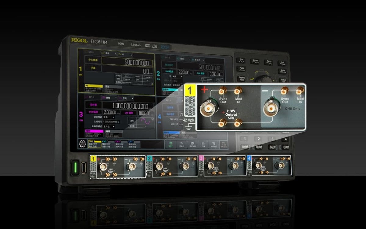 RIGOL's new-generation flagship signal source. Based on a 1GHz bandwidth and 16-bit high resolution, it features powerful 4-channel high-voltage differential direct-drive capabilities. Without the need for an external power amplifier and balun, it can output a strong 20Vpp signal and a 350ps ultra-fast square wave. Coupled with the fully isolated channel design, the DG6000 can directly replace the traditional complex link and provide you with a pure and powerful test excitation.