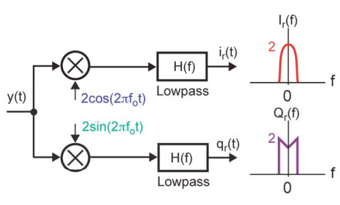 2. 正交解调:下变频后的信号被分成两个正交分量,即I(同相)和Q(正交)分量。这通常通过两个混频器(或等效的电子电路)实现,一个与本振的余弦波相乘以提取I分量,另一个与本振的正弦波相乘(可能还要加上一个90度的相位延迟)以提取Q分量 。