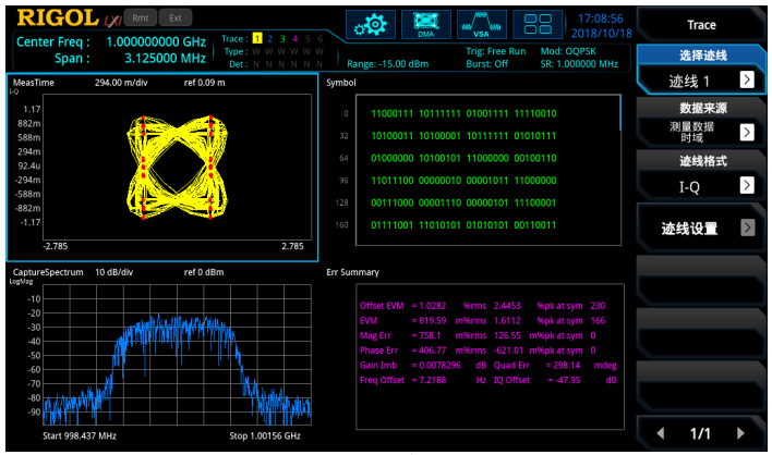 对于IQ解调的过程,以Rigol的RSA5065N为例,使用其VSA功能可以对IQ信号进行解调。