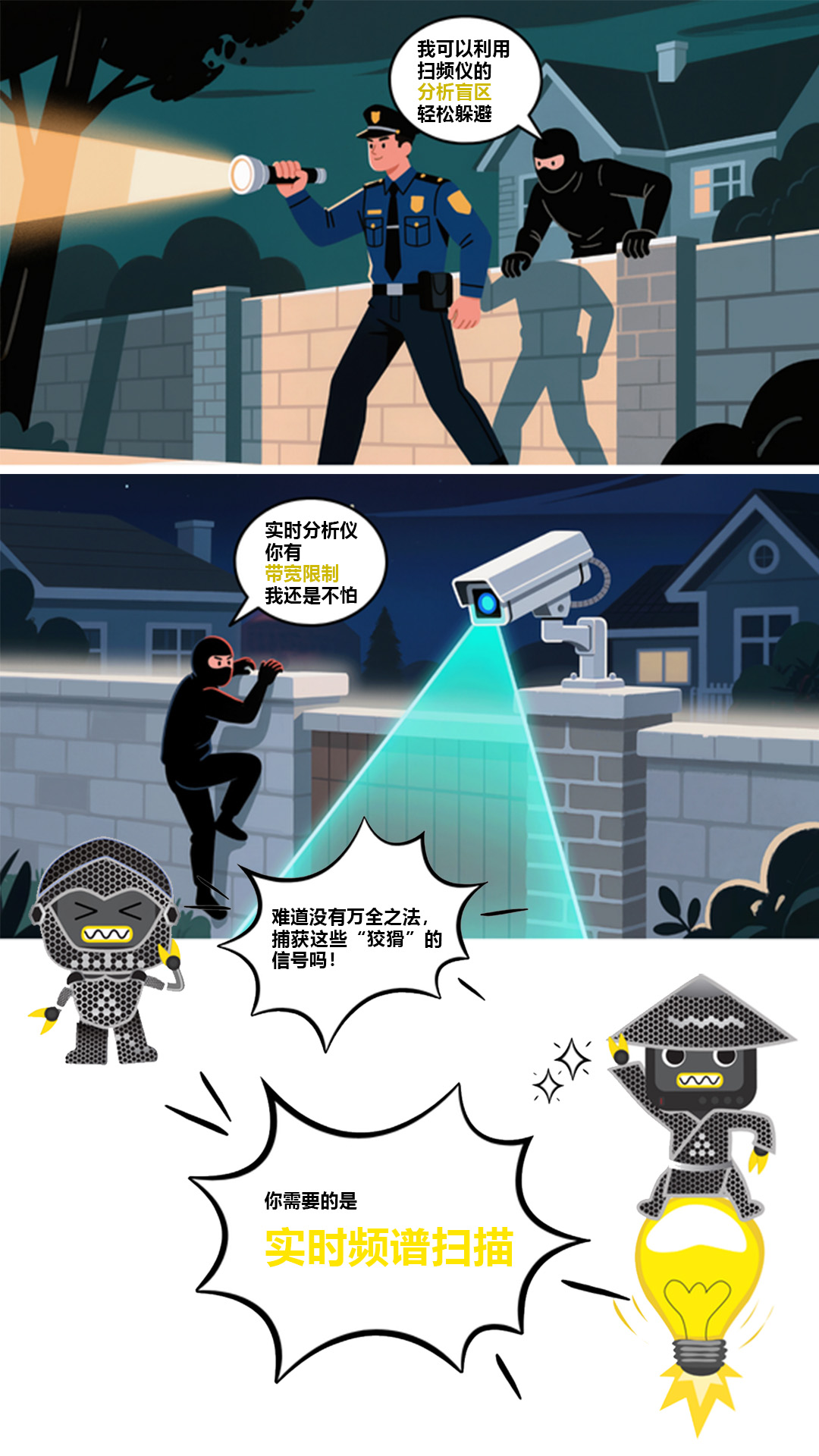 对比频谱分析仪的两大核心技术,扫频模式拥有“全频段”的广阔视野,却存在“分析盲区”,可能错过瞬息万变的信号;而实时模式拥有“无遗漏”的捕获能力,却受限于有限的“实时带宽”,如同管中窥豹。这似乎让工程师们陷入了一个两难的境地:是选择广度,还是选择深度?当我们面对一个在数GHz宽的频带内随机跳跃的微弱干扰信号时,传统的工具似乎都显得力不从心。